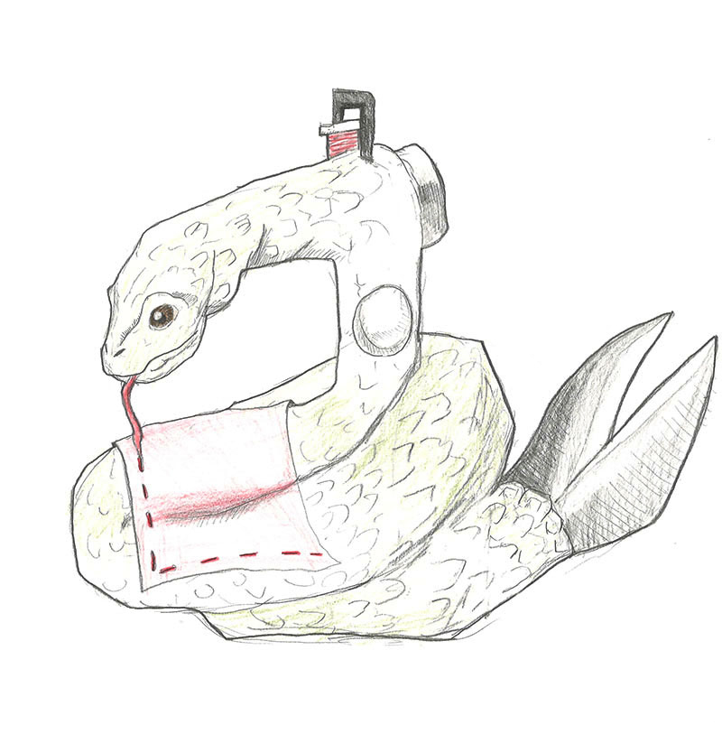 ソーイングスネーク 優秀賞 学校名がっこうめい・学年がくねん 山本小学校 5年 お名前なまえ 近藤篤生こんどうあつき さん 特徴とくちょう・性格せいかく 心優しいヘビ。布をぬうときにこまったらあらわれれる。 舌がぬう部分になっていてしっぽが糸切りバサミになっている。 作品一覧にもどる
