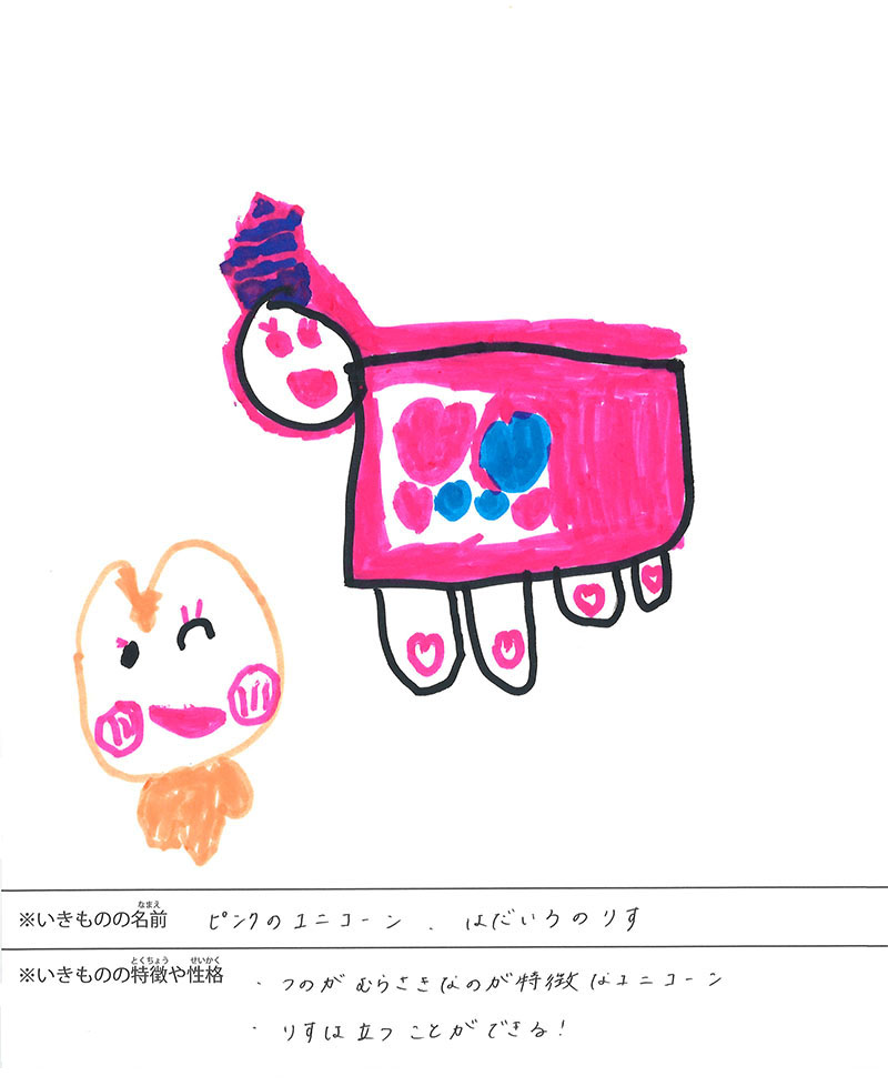 ピンクのユニコーン、はだいろのりす